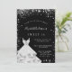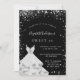 En modern, snyggt och glamorös inbjudan till en svensk 16, 16:e födelsedagsfest. En chic svart bakgrund med faux silver glitter damm och en klänning. Namn är skrivet med ett modernt handskript i stil. Anpassa och lägg till information om party.