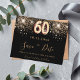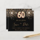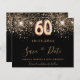 Ett giftigt och trendig Spara datum för en 60:e födelsedagsfest. En svart bakgrund dekorerad med faux guld glitter. Mallar för datum och namn och text. Golden färgad brev. Texten: Spara datumet skrivs med ett stort trendig-handskript i stil.