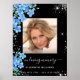 Personifiera och lägg till ett foto, ett namn och datum. En klassisk svart bakgrund med falskt silverglitter glitterdamm, dekorerad med blå glöm-mig-ej blommor.