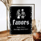 Lägg till en liten elegans till din Halloween-händelse med det här Black Gothic Skeleton Favors Sign. Det här tecknet ger dina gäster elegant vägledning till deras läskunniga behandlingar. Det är perfekt för både inomhus- och utomhusanvända, tillverkat av tåliga, väderbeständiga material, vilket garanterar att dina Halloween-favoriter framträder i stil. 💀 💀 💀