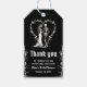 Lägg till en kuslig touch på din bröllopsfest med våra svarta gotiska Halloween-skelett Bröllopspresent Tags! Med en mörk, elegant design med gotiska element och skelettmotiv är dessa etiketter perfekta för att lägga till en kusligt vacker touch på dina presenter eller förmånsgåvor. Oavsett om du binder dem till festförmånsgåvor, presenter eller dekorationer, kommer dessa etiketter att ge en mystisk, Halloween-inspirerad stämning till din bröllopsfest. Perfekt för brudar som älskar allt gotiskt och kusligt!