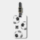 Det här fotbolls-temat-bagagetaggen är helt enkelt designat med tre slumpmässigt arrangerade soccerkulor - grått och vita fotbollar - personifierade med namn och monogram på framsidan, adress på baksidan - av katz_d_zynes