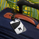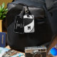 Den här basketresemaggen som är lämplig för en flicka eller pojke har en abstrakt överdimensionerad basket med alternerande svarta, vita och grått-paneler, på vilka du kan anpassa idrottsmannens monogram - anpassa adress och mobila nummer på baksidan - av katz_d_zynes