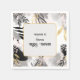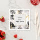 Den har en vår-lafy i blommigt i svart, grått och guld. Tallrikar och servetter matchar duschinbjudan i samma design.