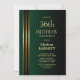 Bjud in dina vänner och nära och kära till din födelsedagsfest med denna moderna svarta och gröna födelsedagsinbjudan med guldstrimmor. Det anpassningsbara textområdet i denna inbjudsmall låter dig inkludera alla nödvändiga detaljer för din speciella födelsedagsfirande, inklusive namn, ålder, datum, tid, plats och RSVP-information. En mängd olika papperssorter och hörnstilar finns tillgängliga för dina unika inbjudningar, tillsammans med möjlighet att ladda ner om du föredrar ett digitalt format.