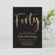 Fyrtio Svart och Falskt Guld Födelsedagsinbjudan med modern skriftsnitt. En enkel och rolig vuxen födelsedagsinbjudan för din 40-årsfest.
