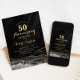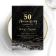 Svart marmorguld 50-årsjubileums inbjudan. Elegant formell design med agatmarmor bakgrund, falskt glitterguld och typsnittsmanus. Trendig inbjudningskort perfekt för en stilig bröllopsjubileumsfirande. Tryckta Zazzle-inbjudningar eller direkt nedladdningsbar digital utskrivbar mall.
