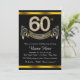 Svart och guld 60-års inbjudan med diamantnummer och banderoll på en vacker svart och guldbakgrund. Denna vackra svarta och gyllene 60-års inbjudan kan enkelt anpassas för ditt evenemang. Du kan ändra bakgrundsfärgen. Denna slående design fungerar bra för både män och kvinnor. Detta är en tryckt design utan riktiga diamanter, silver, glitter etc.