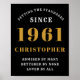En personlig klassisk poster design för detta födelsedagsfirande för en speciell person som föddes 1961 och som fyller 60 år. Lägg till namn till den här vintagen genom att skriva stil svart och guld för en anpassningsbar på 60 års födelsedagspresent. Du kan enkelt redigera namn och år med den angivna mallen. En underbar anpassningsbar födelsedagspresent. Fler gåvor och party för detta 60:e party firande finns i butiken.