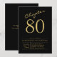Gör din 80-årsdag extra speciell med denna underbara svarta och guldinvitation från Zazzle! Våra svarta anpassade festerbjudningar har en vacker scriptfont med feta guldaccents för en lyxig touch. Anpassa detaljerna för din händelse på baksidan av vykortet och njut av bekvämligheten att få det levererat till dina gästers dörrsteg. Samla din närmaste familj och vänner och fira denna milstolpe i stil!