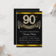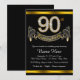 90-års inbjudan med diamantnummer och banderoll på en vacker svart och guld bakgrund. Denna vackra svarta och gyllene 90-års inbjudan kan enkelt anpassas för ditt evenemang. Du kan ändra bakgrundsfärgen. Denna slående design fungerar bra för både män och kvinnor. Detta är en tryckt design utan riktiga diamanter, silver, glitter etc.
