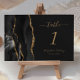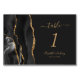 Den vänstra kanten på detta eleganta moderna bröllopsbord nummerkort har en svart akvarell-agat kantlist med falskt guldglitter. Den anpassningsbara texten kombinerar guldfärgad handskrift, och kursiva och kopparstick-font på en svartaktig bakgrund.