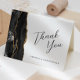 Den lämnat kant på det här eleganten, platta bröllop-tack-kort, har en svart vattenfärgad agatdesign som trimmas med guld faux glitter. Texten står i grått-skript och sans serif typsnitt på vit bakgrund.