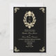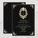 Gör ett statement med denna svarta och guld barocka bröllopsinbjudan med en utsmyckad vintage ram och elegant monogram mittpunkt. Designad för par som är värdar för en lyxig, svart band eller formell bröllopsfirande, sätter denna tidlösa inbjudan den perfekta tonen. Den dramatiska svarta bakgrunden framhäver de metalliska guld dekorationerna och er bröllopsinformation i en elegant skrivstil. Den valfria tomma baksidan tillåter ytterligare text eller foton. Perfekt för glamourösa vinterbröllop, nyårsfirande eller chic kvällsceremoni.