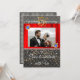 Elegant svart och guld inbjudan med röd sidenintroduktion visar fotografiet av paret. Bilden är dekorerad på övre vänstra och nedre högra sidan med en guld- och blå safir-diamantbrosch.
