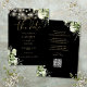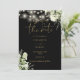 Denna eleganta svarta och gyllene gröna blomsterbelysta sladdljus save-the-date-inbjudan kan anpassas med din information i chic typografi med din bröllopswebbplats QR-kod och detaljer på baksidan. Designad av Thisisnotme