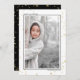 Stiliga och söta fotokort är perfekta för alla dina vänner och familj denna höjdsäsong. Anpassa texten "välkommen" med din egen hälsning och ändra familjenamnet och året och byt ut bilden mot ett foto på dina barn, husdjur eller hela familjen. Designen har en svart ram runt bilden med guld bokeh i bakgrunden och en plats för att skriva ditt familjenamn och året. Baksidan har samma guld bokeh med guldstjärnor på svart bakgrund.