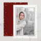 Stiliga och söta fotokort är perfekta för alla dina vänner och familj denna högsäsong. Anpassa texten "välkommen till högtiden" med din egen hälsning och ändra familjenamnet och året och byt ut bilden mot ett foto på dina barn, husdjur eller hela familjen. Designen har en svart ram runt bilden med guld bokeh i bakgrunden och en plats för ditt familjenamn och året. Baksidan har samma guld bokeh med guldstjärnor på röd bakgrund.