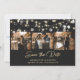 Elegant personlig svart och guld bröllop-foto sparar datumkorten med ett modernt skript. Bröllop spara datum har en fotokollage på 4 bilder mot en svart bakgrund med strängen ljus. Du kan enkelt anpassa den här svartvakten och guld spara datumkortet med information om bilder och bröllop, inklusive en webbplats för bröllop, om du vill. Skicka ett meddelande om du vill ha anpassningsbar.