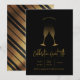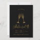 Elegant svart och guld födelsedagsinbjudan med två glänsande champagneglas som skålar. Designen kombinerar en snygg svart bakgrund med glänsande guldbokstäver och accenter, vilket skapar en lyxig och festlig atmosfär perfekt för exklusiva evenemang, fester eller speciella tillfällen.