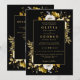 Denna eleganta svarta och gyllene blommiga bröllopsinbjudan kan anpassas med din information i modern typografi med din bröllopswebbplats QR-kod på baksidan. Designad av Thisisnotme
