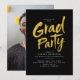 Modern penskrift design Examen inbjudan i svart och guld, med foto i bakgrunden, enkel och unik. Anpassa den med dina egna foton och examensfest information.
