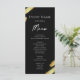 Abstrakt svart och guld meny. Falsk guld folie. Skriftstil framhäver med lättläst serifnamnsstil. Lätt att anpassa för dina egna bröllopsbehov. Skapa din egen meny, använd din egen text för att skapa en elegant men prisvärd och överkomlig eventmeny. Lätt att anpassa. Anpassade menypappersark.