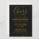 Guldjubileums inbjudan med guldglitterkonfetti och firar 50 år typografi på svart bakgrund. Anpassa de svarta och gyllene inbjudningarna med detaljer.