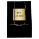 Svart bakgrund, gyllene text. Anpassa och lägg till din företagslogotyp, en text (eller ta bort om det inte önskas)