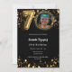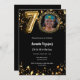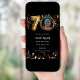 En modern, snyggt fotoinbjudan för en 70:e födelsedagsfest. En klassisk svart bakgrund, dekorerad med faux guld-stjärnor. Anpassa och lägg till information om party.
