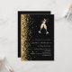 För en elegant 50:e (eller någon ålder) födelsedagsfest. En klassisk svart bakgrund. Dekorerad med faux guld glitter och ett par flutar. Anpassa och lägg till information om namn och party.