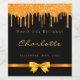 Faux färgad ribbon och båge med faux guld glitter droppar, färgdroppstift. Chicens svarta bakgrund. Anpassa och lägg till ett namn och ett datum. Med texten. Lycklig 21:a födelsedag (eller i någon ålder). Golden färgad brev, ett modernt handskript i stil.