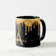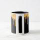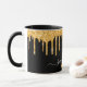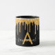 Ett giggt och trendig monogrammat mugg. En svart bakgrund i chicen som dekoreras med faux guld glitter droppar, färgdroppstift. Anpassa och lägga till namn och monogram brev. Vit och guldfärgad färgad brev. Namn är skrivet med ett modernt handskript i stil med dekorationer. Om du bara vill behålla utslagen tar du bort exemplet namn lämnar du blankstegen eller symbolerna framför och efter namn.