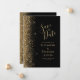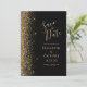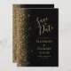 Det moderna bröllop spara datum-kortet från elegantens lämnat kant har ett guld faux glitter gräns. Anpassadet kombinerar handskrift, rityta och kursivt typsnitt med blek guld färgad mot svart bakgrund. Den omvända sidan har en matchande design för svart och guld.