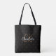 En elegant svart bakgrund. Anpassa och lägg till ditt namn, monograminitialer. Ditt monogram som bakgrundsmönster. Namnet skrivs med en handskriven stilsnurr. Vita och gyllene bokstäver.
