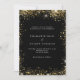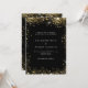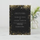 En modern, elegant bröllopsinbjudan. Svart bakgrund dekorerad med falska guldglittergnistor. Anpassa och lägg till era namn och bröllopsdetaljer. Vita bokstäver.