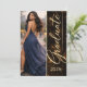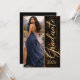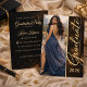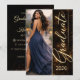 Svart och guld examensdesign med en glödande damm bakgrund, flödande skript namnvisning och raffinerad layout. Parat med en fullständig foto framsida och rena evenemangsuppgifter på baksidan. Perfekt för att vara värd för en polerad examensnatt med middag, drycker och dans.
