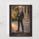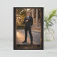 Svart guld porträttdesign med ett formellt examensfoto ramad av en dubbel guldgräns med mjuka ljusaccenter. Skript typografi kombineras med en mörk texturerad bakgrund, perfekt för att vara värd för en polerad kvälls firande med middag, drycker och dans.