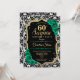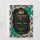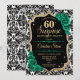Överraskning 60-årsfestinavitation. Feminint svart, vitt och smaragdgrönt formspråk med falskt glitterguld. Innehåller svart och vitt lace-damaskmönster, rosor, skrivstil och konfetti. Perfekt för en elegant födelsedagsfirande för kvinnor. Kan anpassas för att visa vilken ålder som helst. Tryckta Zazzle-inbjudningar eller direkt nedladdningsbar digital utskriftsbar mall.