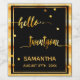 Elegant och modernt för 21:a födelsedag party. Svart bakgrund och faux guld text skriven med ett trendig-stil-skript som inte är skrivet: hej twentyone Med faux golden dots as decor. Mallar för namn och datum, guldbrev. Du kan ändra bakgrunden till färg så att den matchar ditt tema. Klicka på Anpassa och välj sedan en bakgrund färg på högerna.