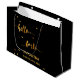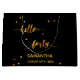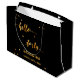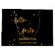 Elegant och modern för en 40-årsdag party. Svart bakgrund och faux guld text skriven med ett handskript för trendiget stil: hej fyrtio. Med gyllene prickar som dekoration. Mallar för namn och datum, guldbrev.