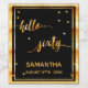 Elegant och modern för en 60:e födelsedagsfest. Svart bakgrund och faux guld text skriven med ett trendig handskript i stil: hej sextio med gyllene punkter som dekortecken. Mallar för namn och datum, guldbrev. Du kan ändra bakgrunden till färg så att den matchar ditt tema. Klicka på Anpassa och välj sedan en bakgrund färg på högerna.