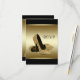 Svart och guld högt klacksko RSVP-svarskort med elegant svart och guld bakgrund. Dessa vackra svarta och gyllene högklackade skor svarskort är perfekta för en kvinnas födelsedagsfest eller annan speciell händelse och kan anpassas med din text i valfri teckensnittsstil och färg. Detta är en tryckt design utan verklig glitter.