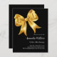 En klassisk svart bakgrund, dekorerad med en stor gyllene båge. Anpassa och lägg till information om namn och party. 1 lakan = 1 inbjudan tryckt kant till kant.