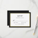 Svart och vitt med en touch av guld klassiskt bröllopsanmälan svarskort. Elegant block och skrivstilstext inom en svart och nyans av guld kant. Svart baksida.