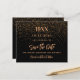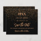En svart bakgrund dekorerad med guldkonetti. Anpassa och lägg till datum och namn/ålder. Texten: Spara datumet skrivs med ett stort trendig-handskript i stil. 1 lakan = 1 Spara datumet som skrivs ut kant till kant.