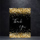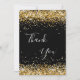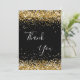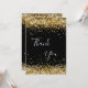 Ett feminin- och elegant födelsedagstack. En svart bakgrund färg. Med faux guld konetti. På framsidan av stora bokstäver och texten: Tack. Tillbaka: Anpassa och lägg till tackkort och namn. Namn är skrivet med ett modernt handskript i stil med dekorationer. Om du bara vill behålla utslagen tar du bort exemplet namn lämnar du blankstegen eller symbolerna framför och efter namn.