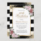 Elegant Black and guld blommigt födelsedag med blommor i rosa och grönt inramning av födelsedagsfesten i guld ram mot en svart och vit bakgrund med guld konetti. blommigt-födelsedagsinbjudan. och guld födelsedag. Rosa och guld födelsedag. Rosa födelsedagsinbjudan. Svart och guld födelsedag. Svart och vit födelsedag. Anpassa den här mallen enkelt till vilken födelsedagsfest som helst.
