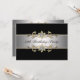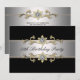 Kvinnas svarta, silver guld och diamant blomster virvel trim elegant svart femtioårsdag fest inbjudan. Storlek 5x7.