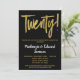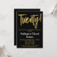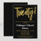 En elegant, enkel men slående svart och guld inbjudan till 20-års bröllopsdag. Glamouröst manus-text överst och guldbokstäver nedanför med namnet i iögonfallande vitt